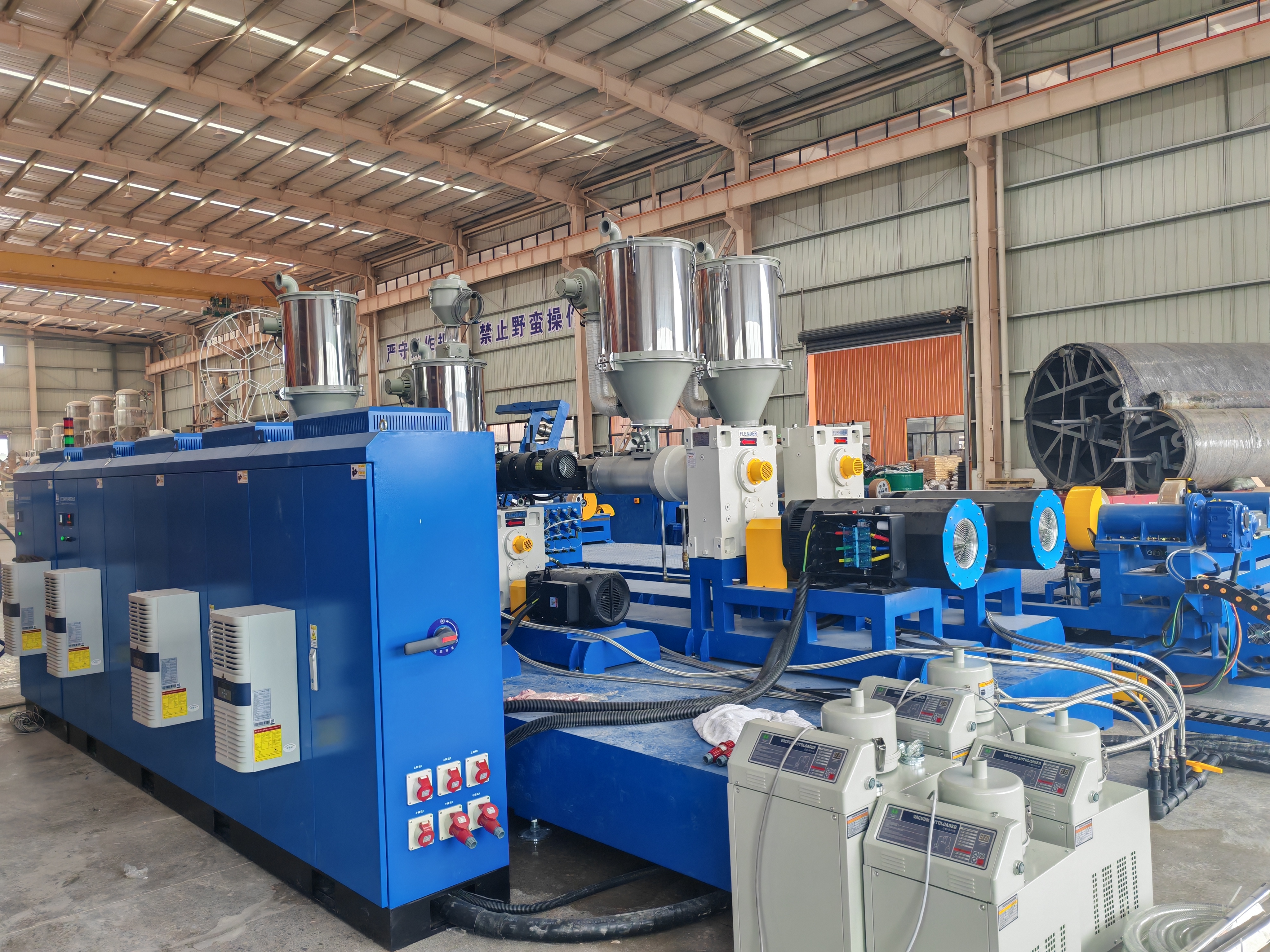 公司全新采购的高密度聚乙烯(HDPE)热态缠绕结构壁管(B)型(简称“克拉管”)生产线顺利完成安装调试,正式投入规模化生产。这一生产线的落地投产,将进一步完善公司管材产品矩阵,提升核心竞争力。